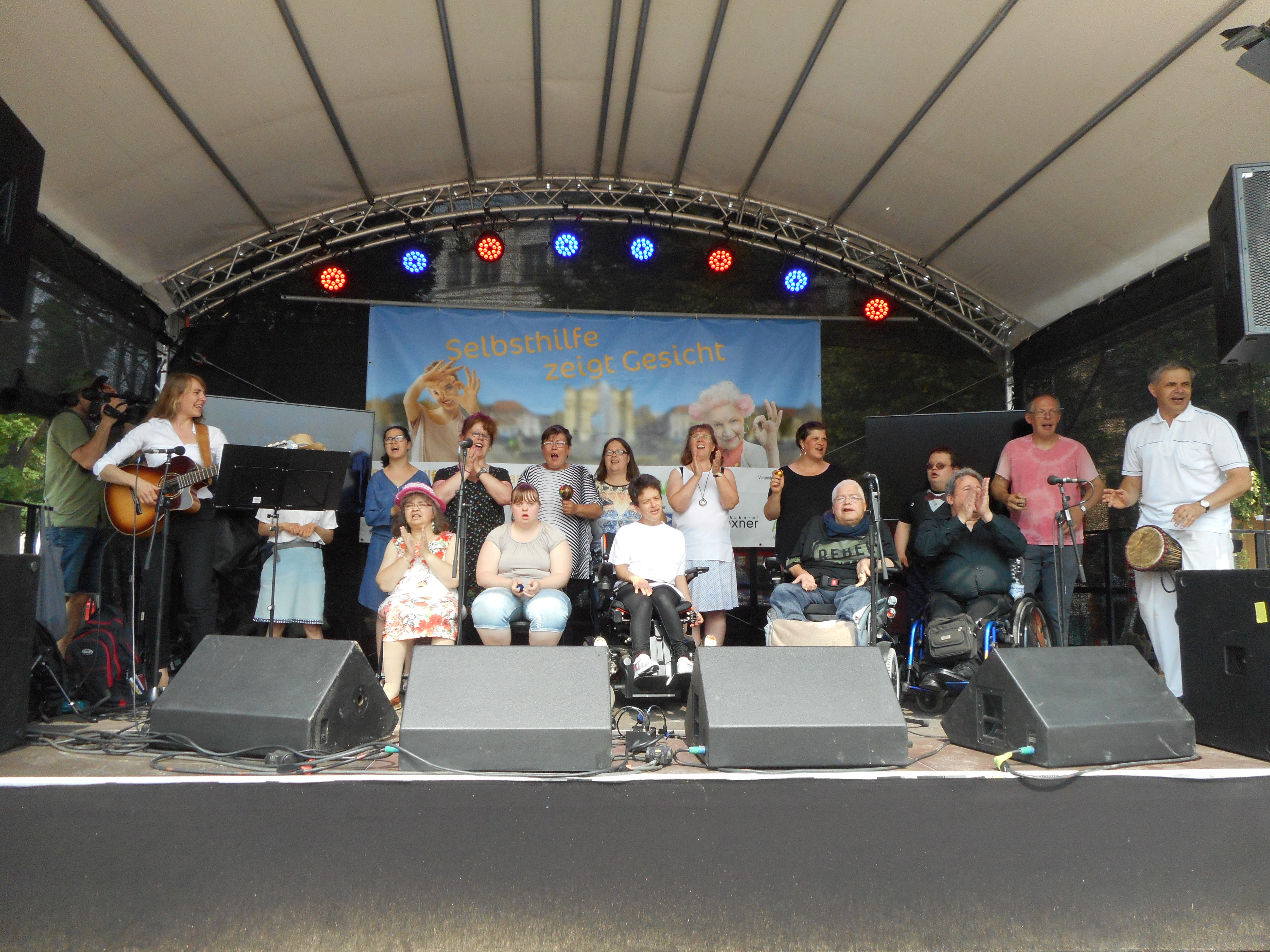 Am 2.6.18 hatten die Werkstattspatzen ihren nächsten großen Auftritt auf dem Luisenplatz, diesmal auf einer großen Bühne. Anlass war der Selbsthilfetag der „Allianz für Selbsthilfe“ aus Potsdam. Die Werkstattspatzen waren super motiviert und hatten großen Spaß beim Singen. Es ist ein Segen, mit solch‘ einer tollen Truppe Musik machen zu können. Die Herzlichkeit, Achtsamkeit und Offenheit untereinander ist bezeichnend. Die Leidenschaft am gemeinsamen Singen kommt als i-Tüpfelchen oben drauf.